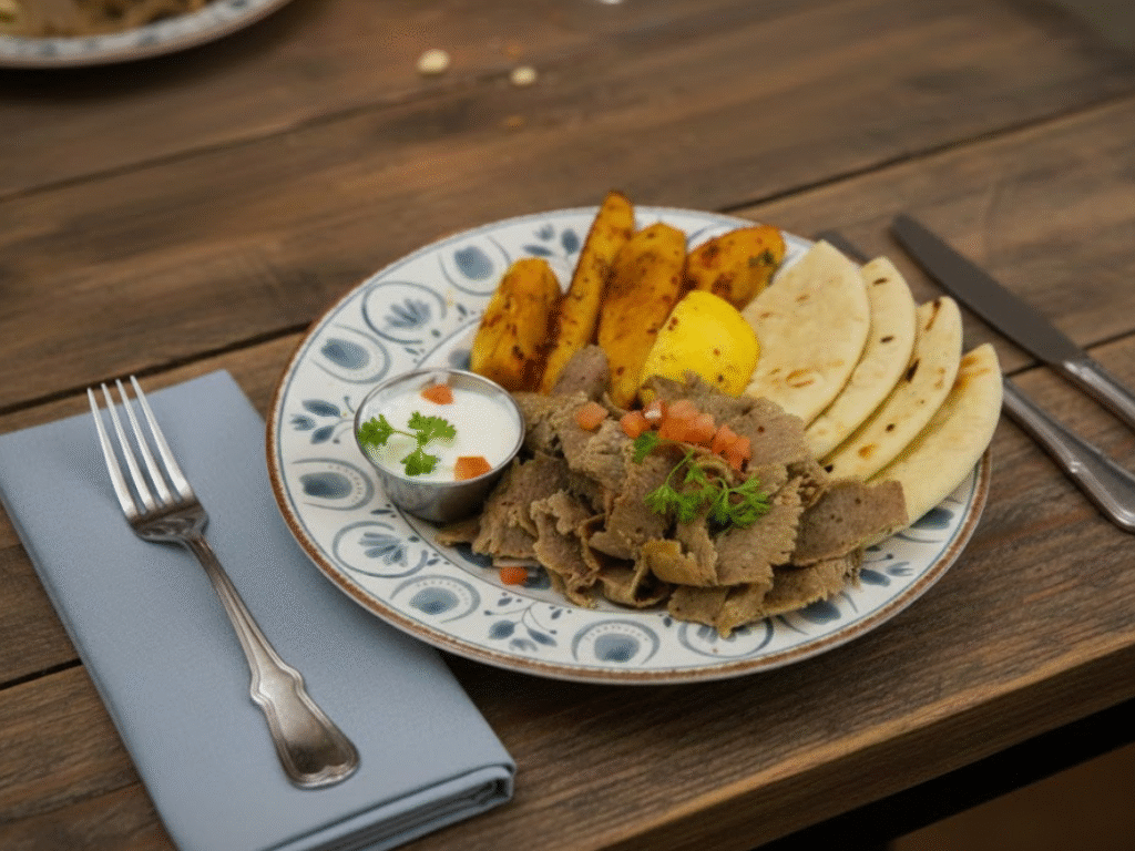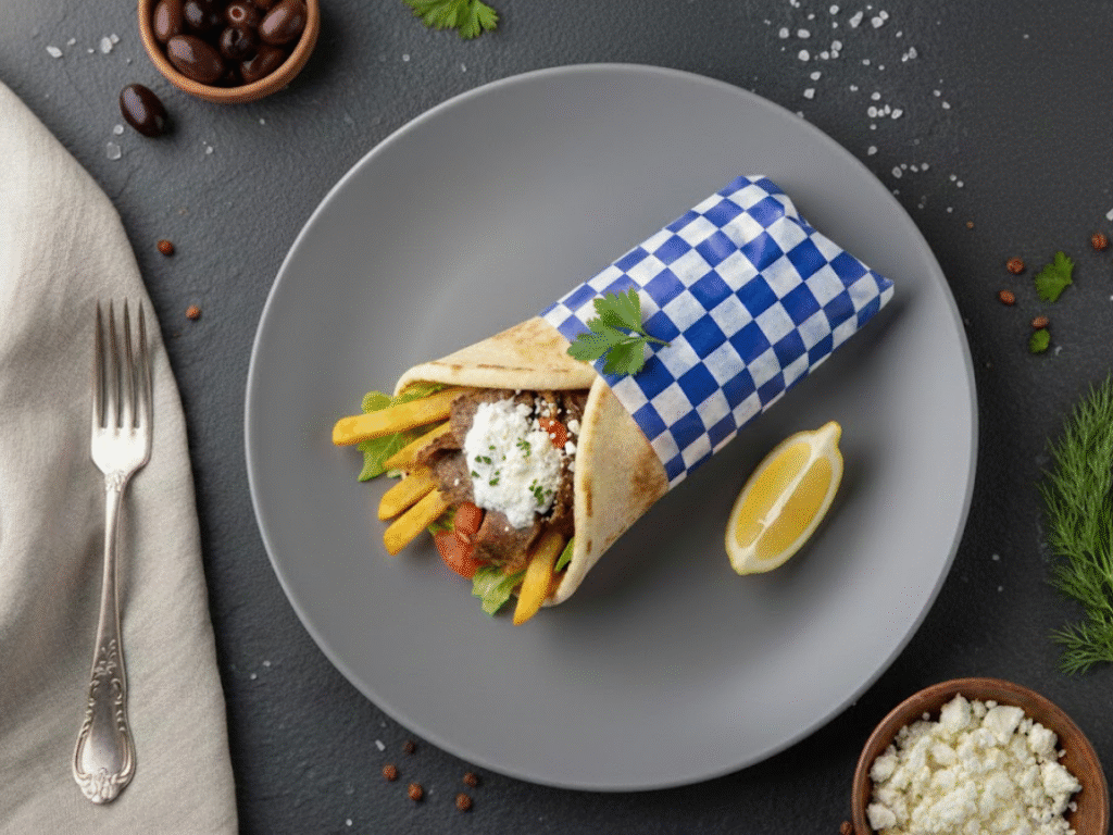 A handful of golden, crispy french fries tucked right inside your favorite gyro.
