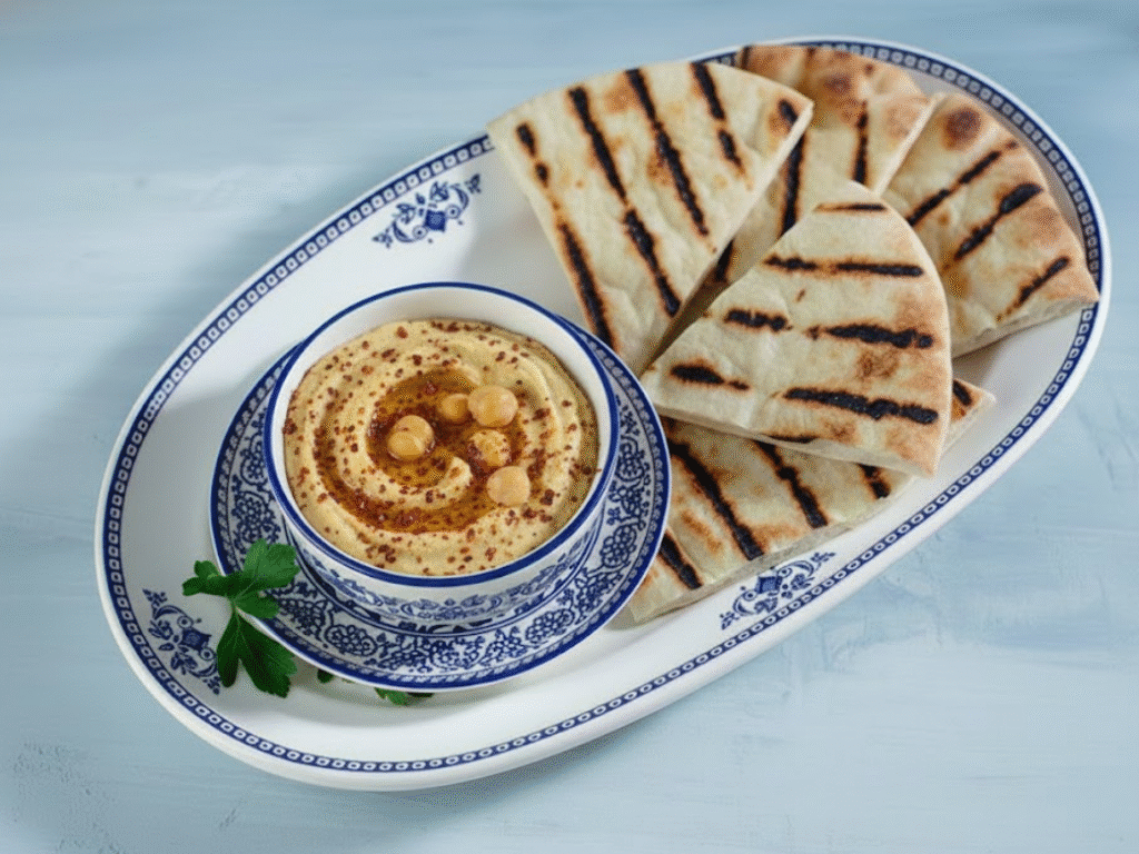 Blend of garbanzo beans, fresh garlic, rich tahini, and a bright squeeze of lemon juice. Served with warm pita bread for dipping.