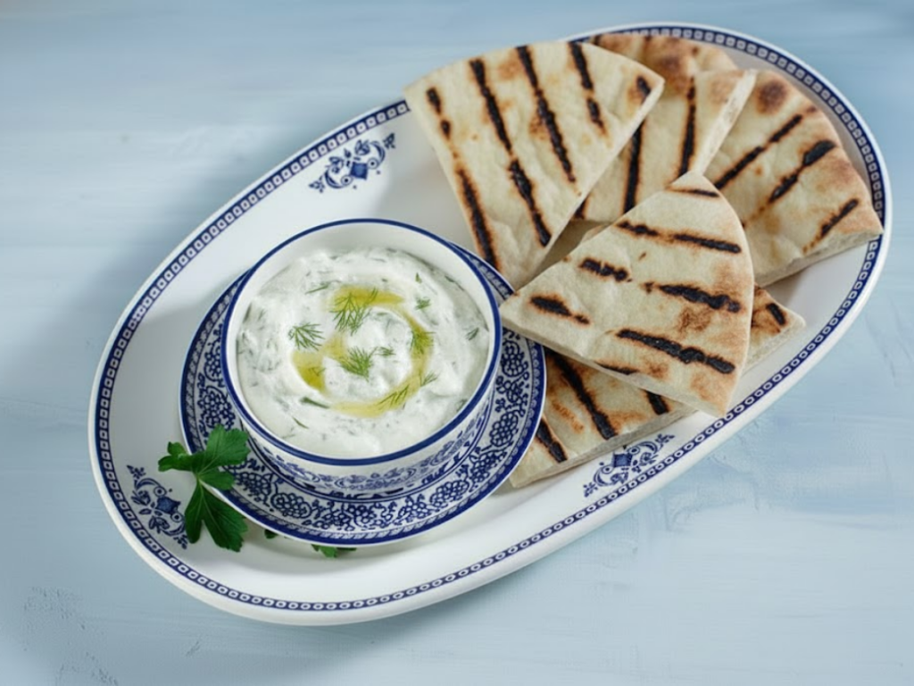 Blend of Greek yogurt and labne with fresh cucumber, garlic, and dill. Served with warm pita bread for dipping.