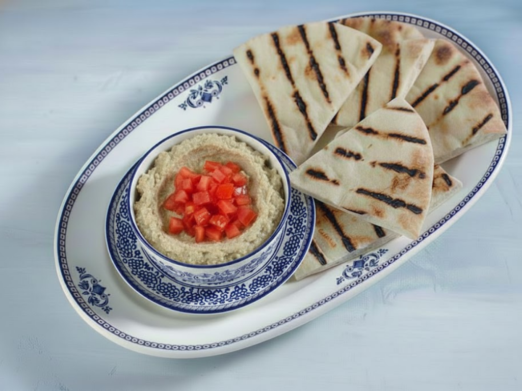 Roasted eggplant, blended with premium olive oil, fresh lemon juice, and a hint of fragrant garlic. Served with warm pita bread for dipping.